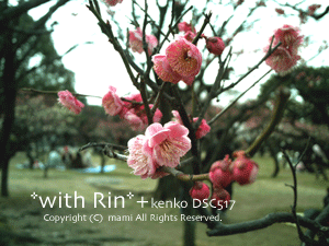 梅のピンク色って綺麗ですよね〜♪写真撮れなかったんだ〜残念。。。りんって重いから、ずっと抱っこってのは相当辛かったみたいです(^^)でも、フリマの中は人がいっぱいだから、歩かせられないもんね(#^.^#)